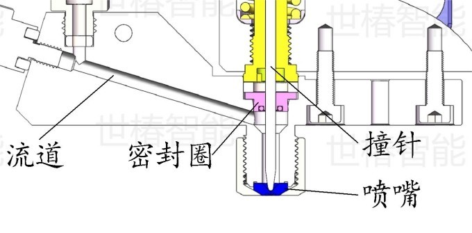 图2 流道与撞针喷嘴组件